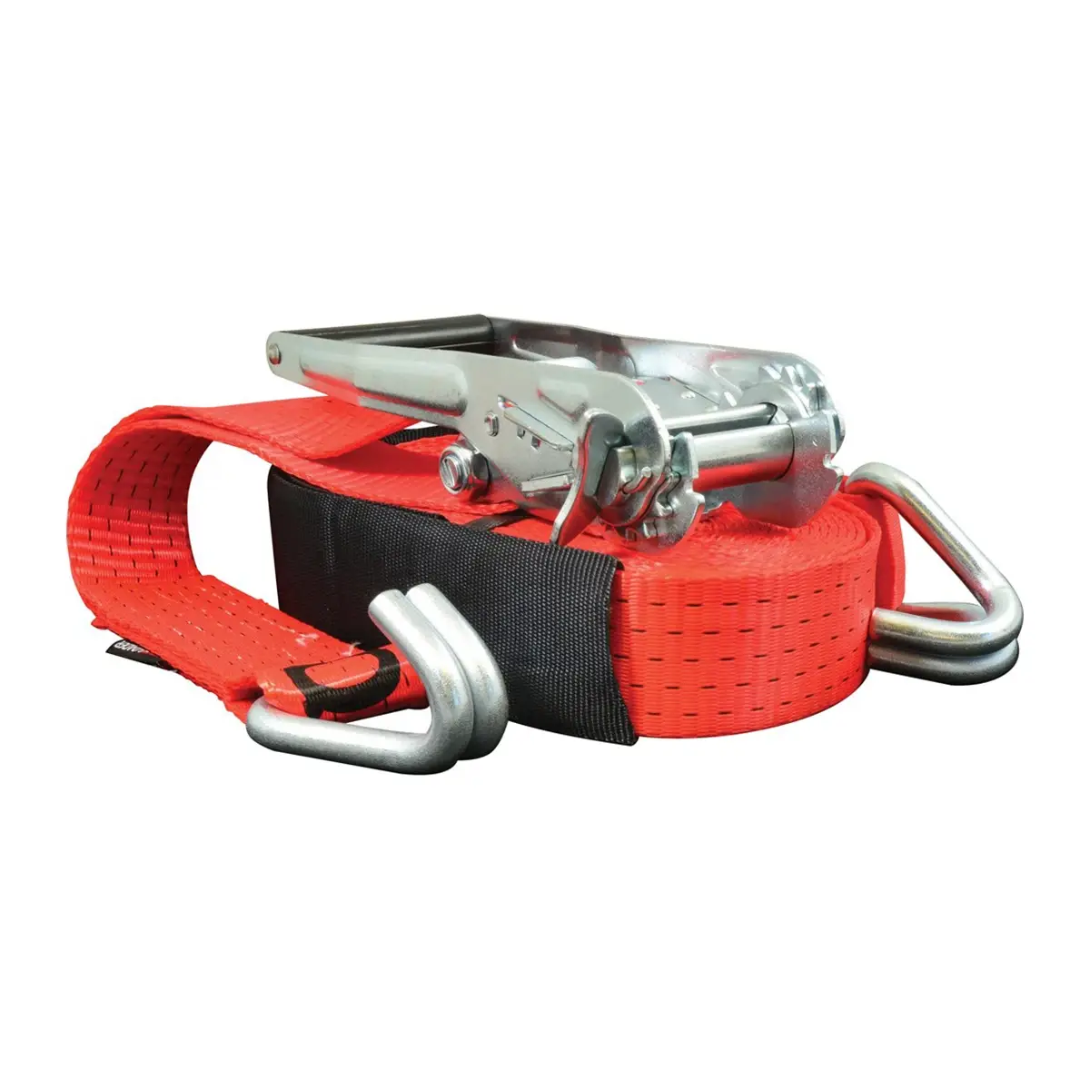 Oceľové J-háky s bezpečnostným profilom zaručujú pevné uchytenie do kotviacich bodov. Povrchová úprava chráni pred koróziou a opotrebovaním, čo zvyšuje životnosť popruhu.