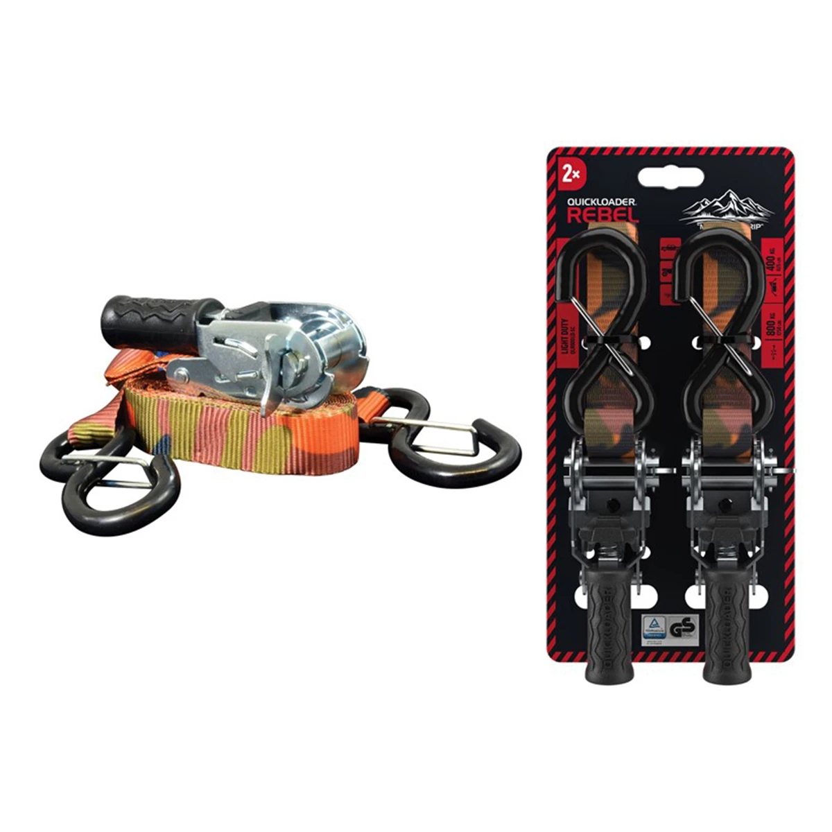 Quickloader Dvojdielny popruh s račňou Rebel 800 kg, 2 PACK