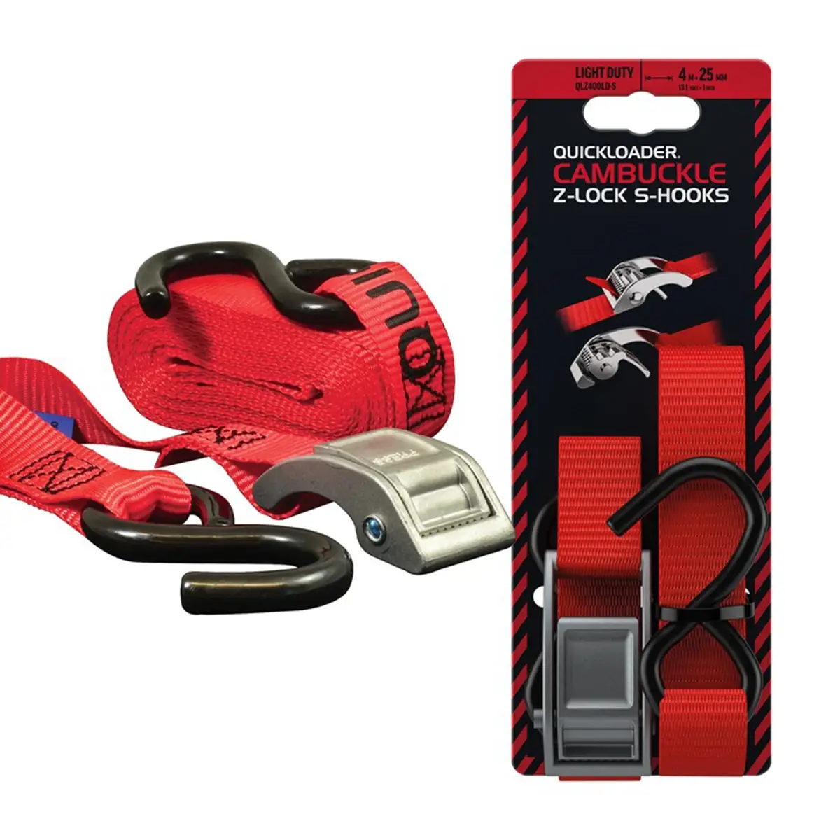 Zabezpečenie nákladu nebolo nikdy jednoduchšie ani spoľahlivejšie. Quickloader Cambuckle Z-lock S-Hooks je vysoko kvalitný upínací popruh určený na rýchle, pevné a bezpečné zaistenie rôznych druhov nákladu. Vďaka praktickej Z-lock sponke typu Cambuckle a oceľovým S-hákom s ochrannou vrstvou ponúka jednoduché, rýchle a spoľahlivé pripevnenie k akémukoľvek typu kotviaceho bodu.
