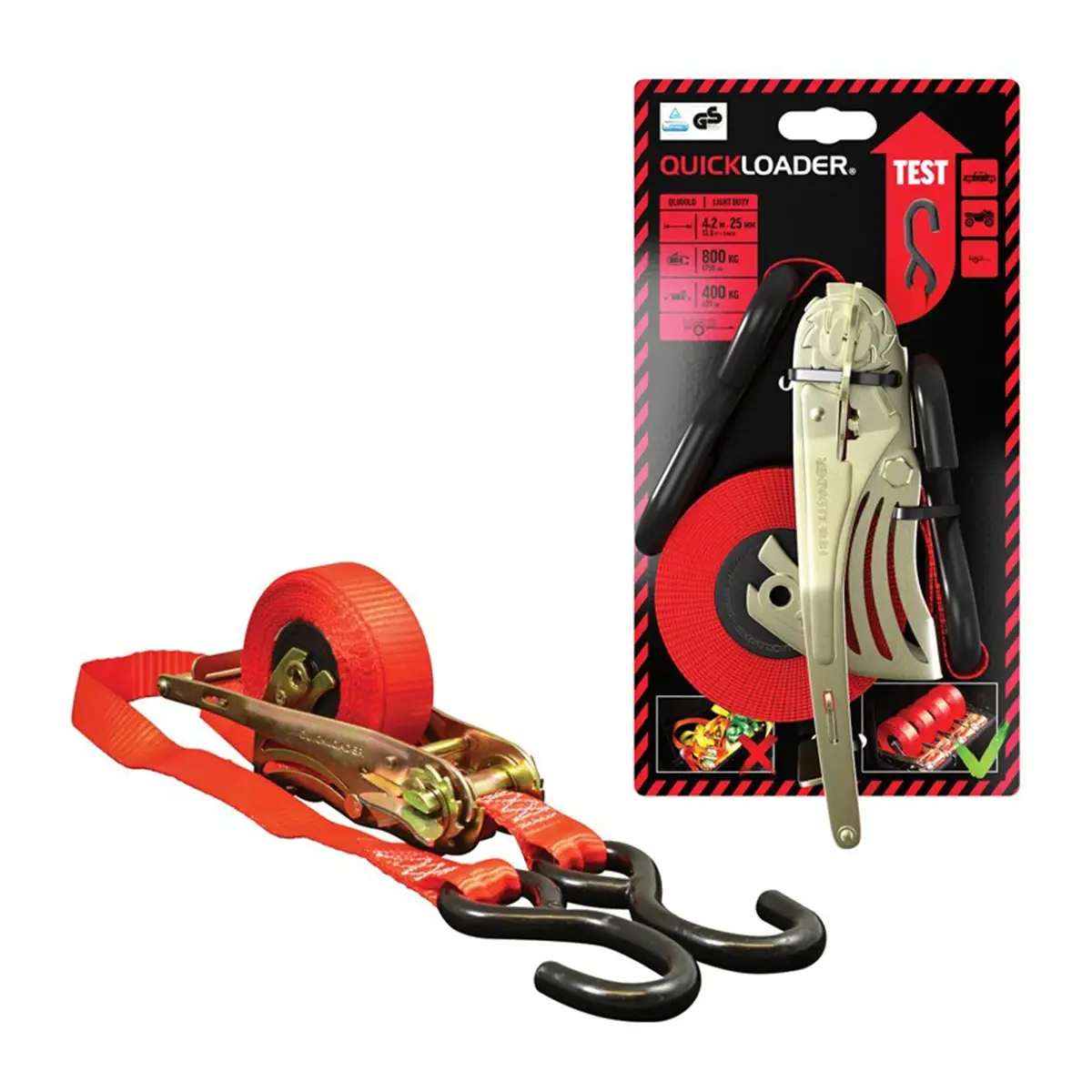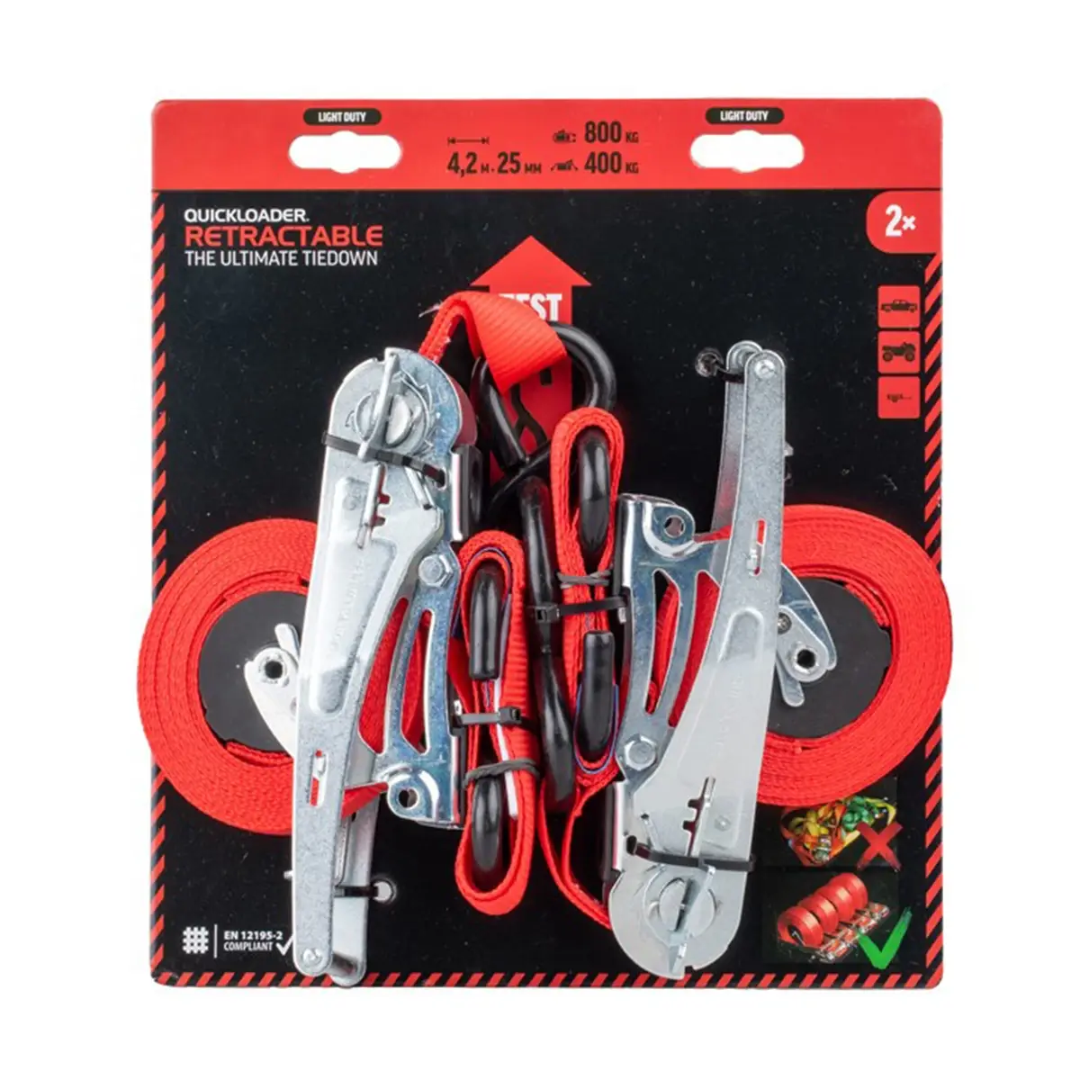 Quickloader Retractable 800 kg je samonavíjací upínací popruh navrhnutý pre každodenné, pohodlné a bezpečné zaistenie ľahších až stredne ťažkých nákladov. S nosnosťou 800 kg a dĺžkou 4,2 metra je ideálnym riešením pre prepravu bicyklov, nábytku, záhradnej techniky, menších strojov či športového vybavenia. Vďaka automatickému navíjaciemu mechanizmu výrazne uľahčuje manipuláciu a šetrí čas – žiadne motanie, žiadne uzly, žiadne starosti.
