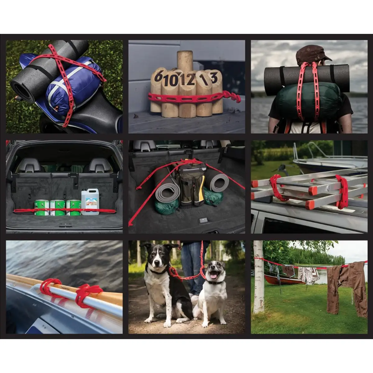 Na použitie nepotrebujete žiadne háky ani náradie. Stačí obtočiť, zaviazať alebo prevliecť podľa potreby. Jednoduché riešenie, ktoré šetrí čas a miesto, no zároveň poskytuje istotu pevného uchytenia.