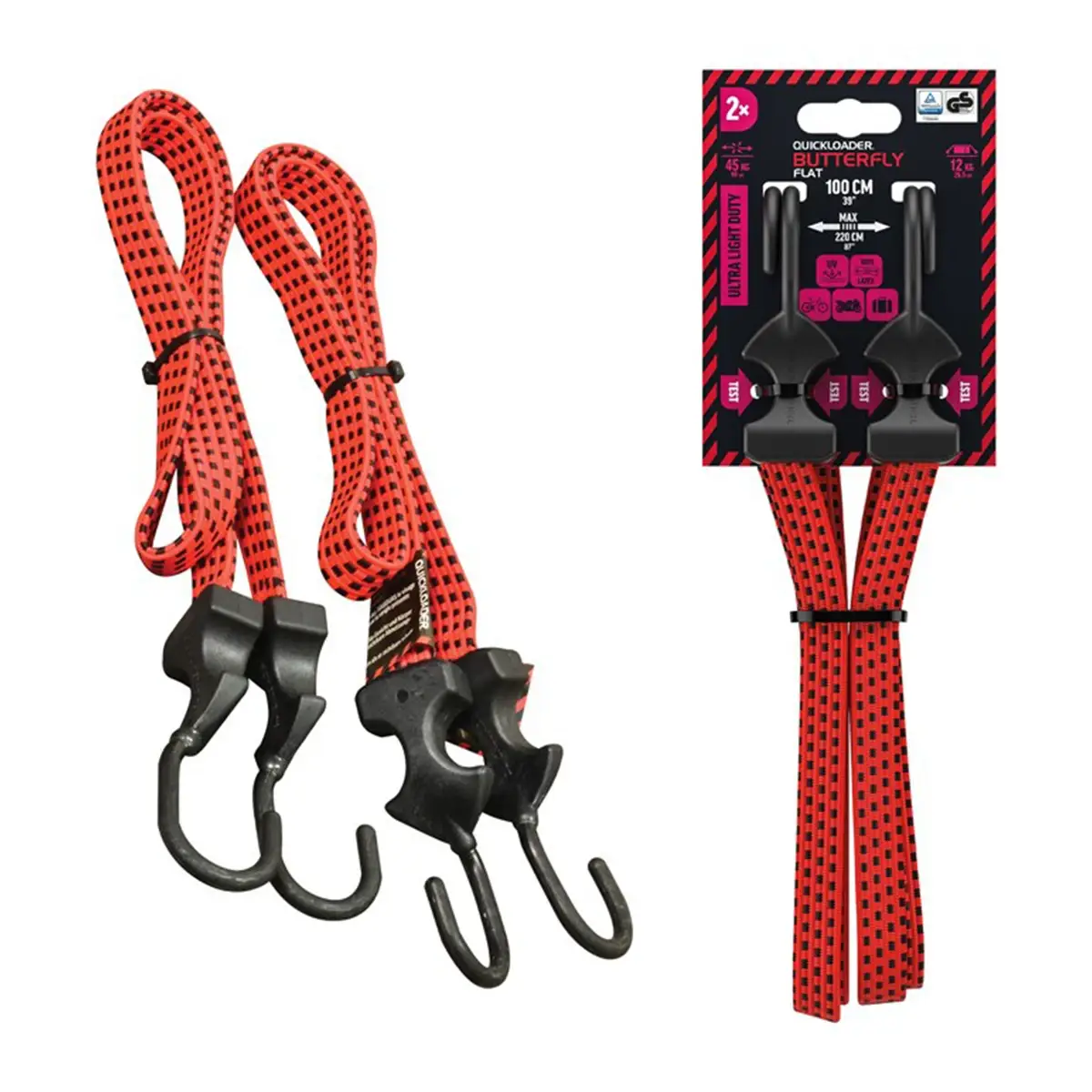 Quickloader Bungee Butterfly Flat je špičková upínacia guma s plochým profilom, navrhnutá pre maximálnu bezpečnosť, pevnosť a komfort pri upevňovaní. Inovatívna konštrukcia typu Butterfly v kombinácii s odolnými plastovými hákmi zaručuje spoľahlivé uchytenie bez poškodenia povrchu. S dĺžkou 100 cm, šírkou 18 mm a nosnosťou až 45 kg predstavuje ideálne riešenie pre všetkých, ktorí potrebujú rýchlo a bezpečne zabezpečiť náklad, výbavu alebo predmety v domácnosti, dielni či na cestách.